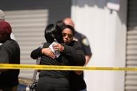Council woman Tabatha Taylor, right, hugs an unknown person outside the scene of a mass shooting in Shreveport, La., Sunday, April 19, 2026. (AP Photo/Gerald Herbert)