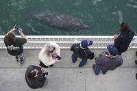 A manatee comes to the surface to breathe as people visit Manatee Lagoon, a free attraction operated by Florida Power & Light Company that lets the public view and learn about the sea cows who gather in winter in the warm-water outflows of the company's power plant, in Riviera Beach, Fla., Friday, Jan. 10, 2025. (AP Photo/Rebecca Blackwell)