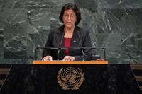 One protester held up a sign alluding to claims that Greene when Trump partially paused tariffs against many countries last week. In questions from reporters afterward, Greene did not specifically deny having advance knowledge of the pause but repeated that a financial adviser manages her stock holdings without input from her.