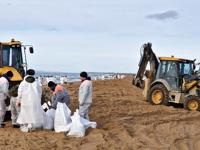 Russia’s Emergencies Ministry said Sunday that over 96,000 tons of contaminated sand and soil had been removed by officials and volunteers along the shoreline of the Krasnodar region’s Anapa and Temryuk districts.