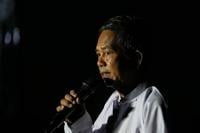 An official of the Union Election Commission announces the open of a polling station during the third phase of general election in Mandalay, central Myanmar, Sunday, Jan. 25, 2026. (AP Photo/Aung Shine Oo)