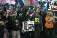 FILE - Einav Zangauker, center, mother of Israeli hostage Matan Zangauker, takes part in a protest in Tel Aviv, Israel, Dec. 7, 2024, following the release of a Hamas video of Matan making a plea for his own release. (AP Photo/Mahmoud Illean, File)