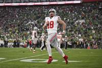 Smith, , had a remarkable bowl debut with seven receptions for a season-high 187 yards — including five catches for 161 yards in the first half alone, hauling in scoring passes of 45 and 43 yards. Egbuka compared Smith favorably to Jaxon Smith-Njigba, who had three years ago.