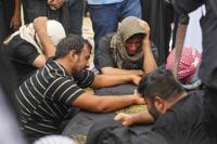 Mourners attend the funeral of victims who died in a fire at a shopping center in Kut, at the shrine of Imam Ali in Najaf, Iraq, Thursday, July 17, 2025. (AP Photo/Anmar Khalil)