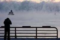 Doug Kunde watches as steam is seen over Lake Michigan as frigid temperatures for the day are not expected to reach zero degrees Friday, Jan. 23, 2026, in Milwaukee. (AP Photo/Morry Gash)