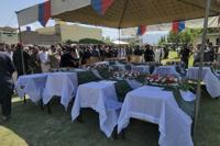 Police and government officials attended a collective funeral ceremony Tuesday for the officers killed in the blasts.