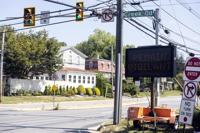 Signs warning locals and drivers passing through to remain vigilant as the manhunt continues for the escaped murderer Danelo Cavalcante in Chadds Ford, Pa., on Wednesday, Sept., 6, 2023. Cavalcante was able to escape a prison yard in suburban Pennsylvania last week by climbing up a wall and over razor wire, officials said at a news conference Wednesday. (Tyger Williams/The Philadelphia Inquirer via AP)