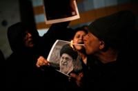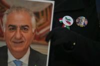 Protesters hold up a picture of Iran's exiled Crown Prince Reza Pahlavi as they demonstrate outside the Iranian Embassy in London, Monday, Jan. 12, 2026. (AP Photo/Alastair Grant)