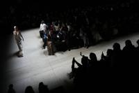 A model demonstrates a creation by Russian brand Addicted_To on a runway of the Moscow Fashion Week in Moscow, Russia, Thursday, March 13, 2025. (AP Photo/Pavel Bednyakov)