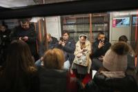 Passengers look at their smartphone while riding a subway car in Moscow, Russia, Tuesday, March 4, 2025. (AP Photo/Alexander Zemlianichenko)