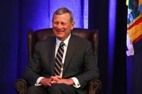Chief Justice John Roberts speaks during a fireside chat at the 125th anniversary celebration of the United States District court for the Western District of New York, Wednesday, May 7, 2025, in Buffalo, N.Y. (AP Photo/Jeffrey T. Barnes)