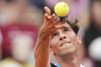 Bosnia and Herzegovina's Damir Dzumhur receives medical assistance as he plays France's Giovanni Mpetshi Perricard , during their second round match of the French Tennis Open, at the Roland-Garros stadium, in Paris, Wednesday, May 28, 2025. (AP Photo/Lindsey Wasson)