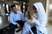 Endah Kartini, 44, the new wife of Fauzi, a 35-year-old porter from East Jakarta, said: “Praise God! I am happy and feel calm now.†She added that she wishes that they can have two children.