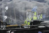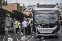Israeli police and rescue teams inspect the scene of a shooting attack where several people killed and injured at a bus stop in Jerusalem, Monday, Sept. 8, 2025. (AP Photo/Mahmoud Illean)