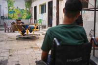 In Gaza, thousands face similar challenges. Youssef al-Samri, 16, lost both legs while fetching water near his home after an Israeli airstrike in May. Displaced to a kindergarten in the al-Tuffah neighborhood of Gaza City, he navigates his world on his hands, relying on support to move through the classrooms where children play around him.