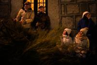 Attendees wait next to the bushes that will be set alight as part of a ritual in honor of Saint Anthony the Abbot, the patron saint of domestic animals, in San Bartolome de Pinares, Spain, Friday, Jan. 16, 2026. (AP Photo/Manu Fernandez)