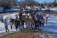 Students from Roosevelt High School protest during a walkout, Monday, Jan. 12, 2026, in Minneapolis. (AP Photo/Jen Golbeck)