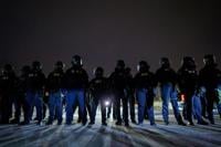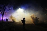 Law enforcement officers stand amid tear gas at the scene of a reported shooting Wednesday, Jan. 14, 2026, in Minneapolis. (AP Photo/Adam Gray)