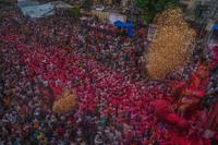 Devotees dance as an idol of the elephant-headed Hindu god Ganesha is taken for immersion on the final day of the ten-day-long Ganesh Chaturthi festival in Mumbai, India, Saturday, Sept. 6, 2025. (AP Photo/Rafiq Maqbool)