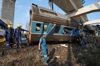 NAKHON RATCHASIMA, Thailand (AP) — A construction crane fell onto a moving passenger train on Wednesday, causing a fiery derailment that killed at least 32 people in northeastern Thailand.