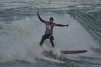 Palestinian Tahseen Abu Assi surfs on the beach of Gaza City, Sunday, Dec. 28, 2025. (AP Photo/Jehad Alshrafi)