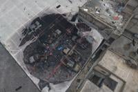 FILE - An aerial view shows destroyed vehicles in a building in the area of the predominantly Kurdish Sheikh Maqsoud neighborhood where clashes broke out Tuesday Jan. 6 between government forces and the Kurdish-led Syrian Democratic Forces in the northern city of Aleppo, Syria, Monday, Jan. 12, 2026. (AP Photo/Omar Albam)