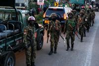 Ugandan security forces patrol a street during a campaign rally for opposition presidential candidate Robert Kyagulanyi Ssentamu who is known as Bobi Wine, ahead of elections, in Mukono, Uganda, Friday, Jan. 9, 2026. (AP Photo/Hajarah Nalwadda)