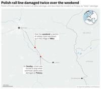 A Polish security source told The Associated Press that authorities are investigating whether the blast on Sunday on the line linking Warsaw to southeastern Poland is connected to Russia, Belarus or their proxies.