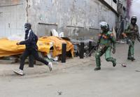 A protestor is chased by police in Nairobi, Kenya, Thursday Aug. 8, 2024 during a demonstration against hunger. (AP Photo/Andrew Kasuku)