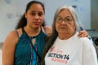 Polish Prime Minister Donald Tusk, right, speaks with Ukrainian President Volodymyr Zelenskyy after the two countries reached an agreement on a longstanding source of tensions between them: the exhumation of Polish victims of World War II-era massacres by Ukrainian nationalists, in Warsaw, Poland, on Wednesday, Jan. 15, 2025. (AP Photo/Czarek Sokolowski)