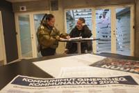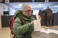 Carl Fleischer, 59, receives his ballot during an early voting for Greenlandic parliamentary elections at the city hall in Nuuk, Greenland, Monday, March 10, 2025. (AP Photo/Evgeniy Maloletka)