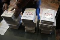 Copies of the book by Pope Francis titled "Viva la Poesia" (long live poetry) are set on a desk during its presentation to the journalists in Rome, Friday, March 21, 2025. (AP Photo/Gregorio Borgia)