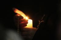 A nun holds a candle as she prays in St. Peter's Square, at the Vatican, during a vigil rosary for the recovery of Pope Francis, Tuesday, March 18, 2025. (AP Photo/Gregorio Borgia)