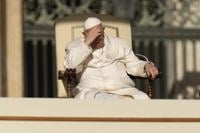 Pope Francis sits as he holds his weekly general audience in St. Peter's Square, at the Vatican, Wednesday, March 29, 2023. (AP Photo/Alessandra Tarantino)