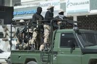 Police patrol the streets on election day in Zanzibar, Tanzania, Thursday, Oct. 30, 2025. (AP Photo)