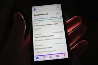 A person poses with a smartphone screen showing an open page of Gosuslugi website, in Moscow, Russia, Tuesday, April 11, 2023. Russian lawmakers have approved legislation that would allow authorities to issue electronic summons to draftees and reservists. The State Duma voted to pass the bill Tuesday on its second and third readings and still needs approval from the upper house of parliament and President Vladimir Putin’s signature to take effect. (AP Photo)