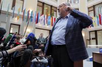 Boris Nadezhdin, a liberal Russian politician who is seeking to run in the March 17 presidential election, speaks to journalists during his visit to the Russia's Central Election Committee to submit signatures gathered for him for the upcoming presidential election, in Moscow, Russia, Wednesday, Jan. 31, 2024. Under Russian law, independent candidates must gather at least 100,000 signatures from 40 regions or more in order to get on the ballot. (AP Photo)