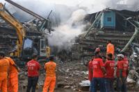 Rescue workers and firefighters work with heavy machinery to search through the rubble of a burnt building of a multistory shopping plaza following a massive fire in Karachi, Pakistan, Monday, Jan. 19, 2026. (AP Photo/Ali Raza)