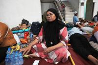 Hafiah, a mother of students, waits in Sidoarjo, East Java, Indonesia, Wednesday, Oct. 1, 2025 as rescue works are underway for the victims trapped under the rubble after a building under construction collapsed at an Islamic boarding school. (AP Photo/Achmad Ibrahim)