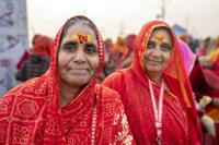 A vermilion dot on the forehead is one of India’s most widely accepted Hindu cultural insignias. But at the festival, where millions are flocking to of India’s holy rivers, it morphs into a major display of Hinduism in various forms and designs.
