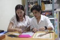 Sunma Piamboon, left, and her partner Danaya Phonphayung prepare a document to register their marriage in Bangkok, Thailand, on Jan. 13, 2025. (AP Photo/Sakchai Lalit)