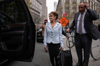 Former Alaska Gov. Sarah Palin arrives to a Manhattan federal court in New York, Monday, April 21, 2025. (AP Photo/Seth Wenig)