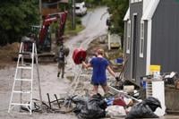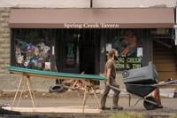 Residents and business owners wore masks and gloves while clearing debris Tuesday in Hot Springs, North Carolina, where almost every building along the tiny town's main street was heavily damaged.