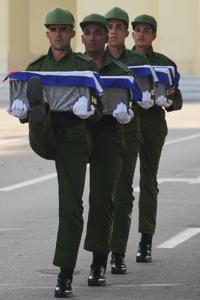 FILE - Soldiers carry urns containing the remains of Cuban officers killed during a U.S. operation in Venezuela that captured President Nicolas Maduro during a funeral in Havana, Cuba, Jan. 16, 2026. (AP Photo/Ramon Espinosa, File)