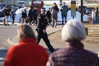 SACO, Maine (AP) — A shelter-in-place order remained in effect Friday evening for downtown Saco, Maine, as police searched for at least four suspects following an exchange of gunfire between the occupants of two vehicles, one of which then careened through an intersection and crashed into a bus carrying school children.