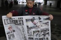 A person reads an extra edition of the Yomiuri Shimbun newspaper reporting that Shigeo Nagashima passed away Tuesday, June 3, 2025, in Tokyo. Nagashima, who was known in Japan as “Mr. Pro Baseball†in Japan and was one of the most famous people in the country during his playing days, has died. He was 89. (AP Photo/Shuji Kajiyama)
