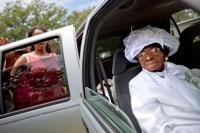 FILE - Cathleen Hillary, 93, the oldest resident of Sapelo Island, Ga. leaves a church service with her great granddaughter Milaika Ellison, for the 129th anniversary of St. Luke Baptist Church on the island on Sunday, June 9, 2013. (AP Photo/David Goldman, File)