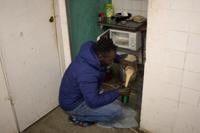 Yankuba Touray, from Gambia, makes coffee in a makeshift kitchen inside an abandoned school in Badalona, near Barcelona, Spain, Tuesday, Dec. 16, 2025, where hundreds of migrants have been occupying the building. (AP Photo/Emilio Morenatti)