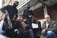 Imad Mohammed Al-Mahmoud, center left, and Somer Mohammed Al-Mahmoud, right, alleged former operatives with the military security before the fall of Bashar Assad, are arrested by security forces in Tadamon, a suburb of Damascus, Syria, Monday, Feb. 17, 2025. The two and Munther Al-Jazairi were arrested accused of being involved in the execution of hundreds of civilians by government forces in Damascus in 2013.(AP Photo/Omar Albam)