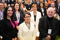 Taiwan's Vice President Bi-Khim Hsiao, center, poses after addressing an event at the European Parliament in Brussels, Friday, Nov. 7, 2025. (AP Photo/Virginia Mayo)